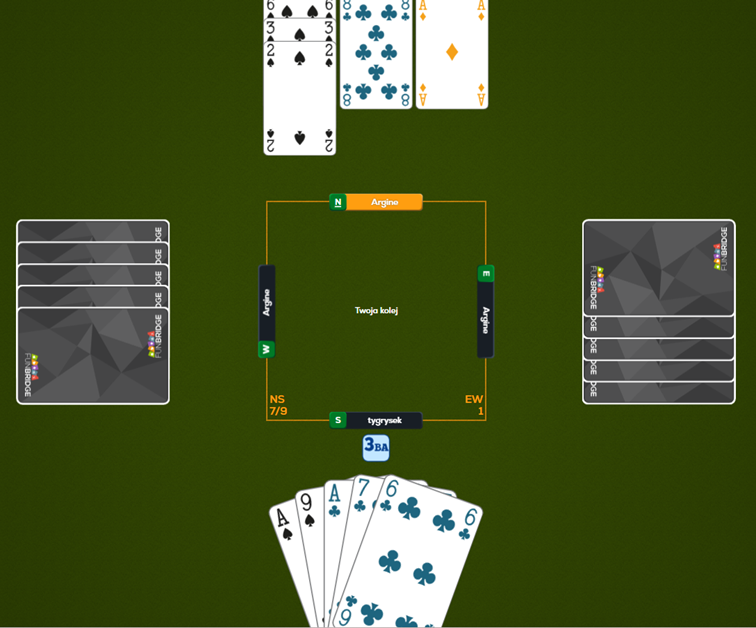 Gramy zatem szóstkę trefl i W jest wpuszczony!