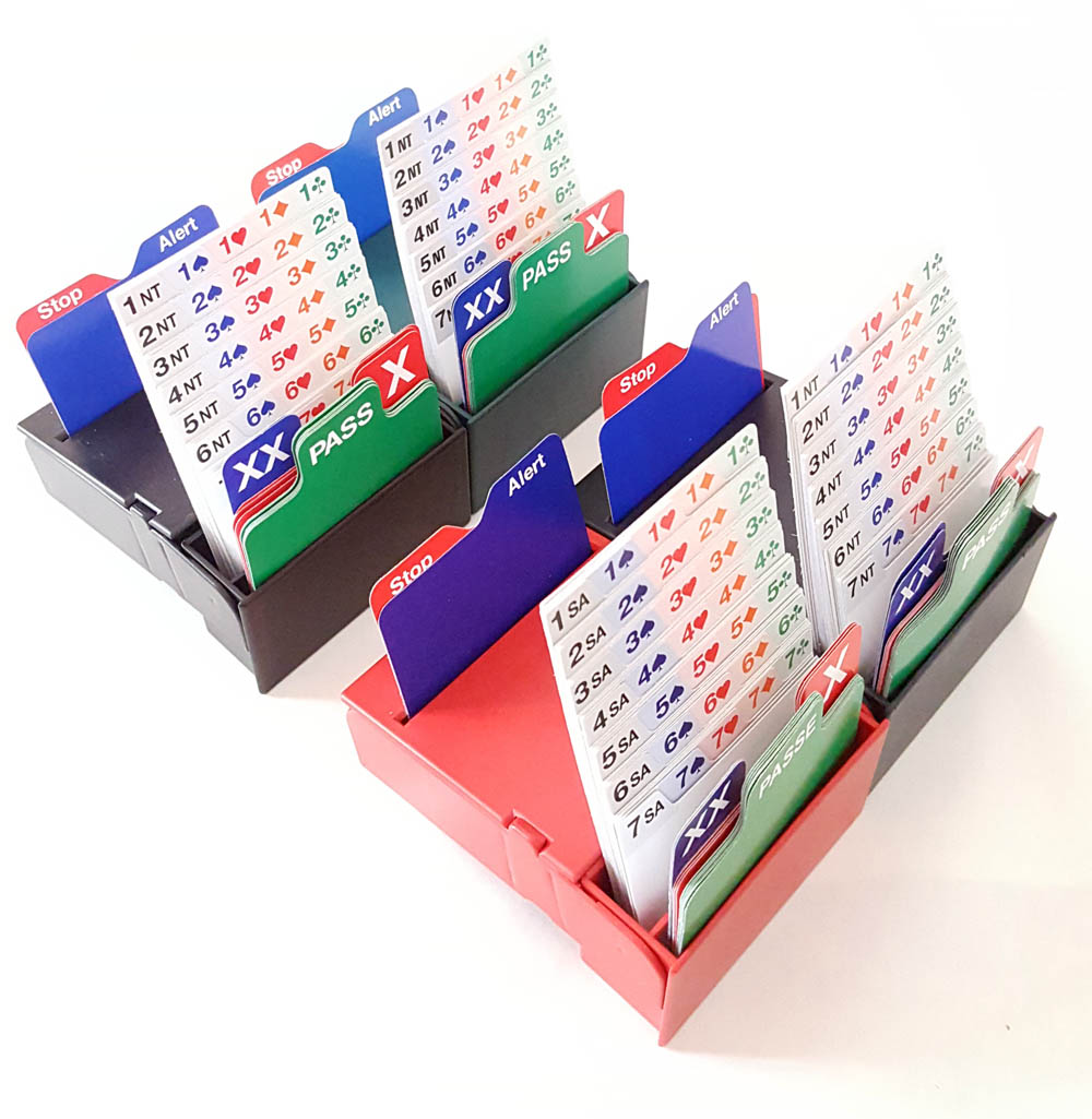 Dzięki bidding-boksom nigdy nie będziesz musiał prosić o powtórzenie licytacji, a jednocześnie unikniesz sytuacji, gdy twoi przeciwnicy tonem głosu przekażą sobie nielegalną informacje o swojej karcie.